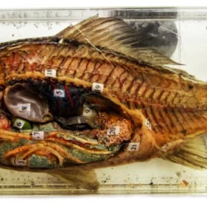 Mokrý preparát. Ryba (vonkajšia a vnútorná štruktúra, v priehľadnom plaste)