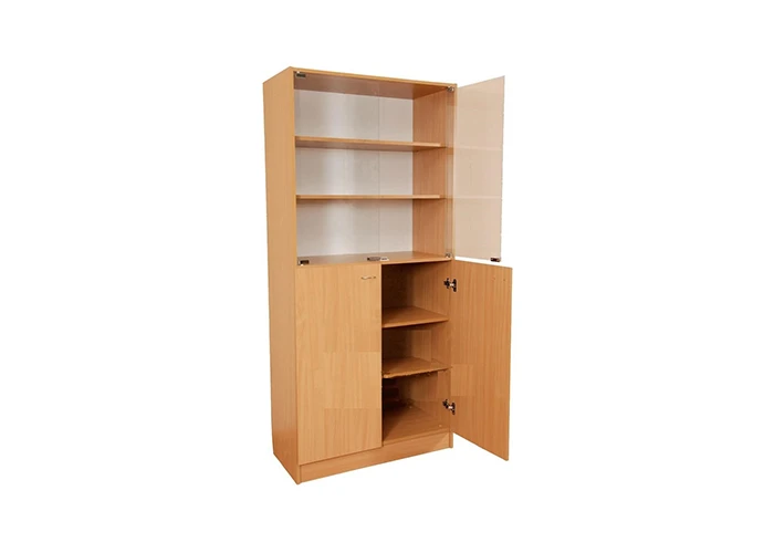 Popis výrobku: Celkové rozmery: šírka – 850 mm, hĺbka – 432 mm, výška – 1864 mm. Konštrukčné prvky sekcie: horné dvierka – priehľadné sklo, spodné dvierka, horný a spodný kryt, boky a police sú vyrobené z laminovaných drevotrieskových dosiek s hrúbkou 16 mm, emisná trieda E1, lepené na koncoch nárazuvzdornou hranou z PVC s hrúbkou 1,0 mm a 0,5 mm pre police. Farba drevotrieskovej dosky je „svetlý buk“. Na upevnenie je použité kvalitné kovanie. Zadná stena – drevovláknitá doska. To všetko zabezpečuje vysokú pevnosť nábytku a zvyšuje jeho životnosť.