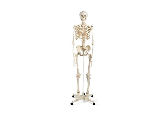 Model demonštruje základný ľudský pohybový aparát. Končatiny sú pripojené k pružnej základni. Je vyrobený zo špeciálneho plastu, ktorý presne imituje kostné tkanivo, má prirodzené farby, je na stúpačke a je skladací. Výška kostry 170 cm