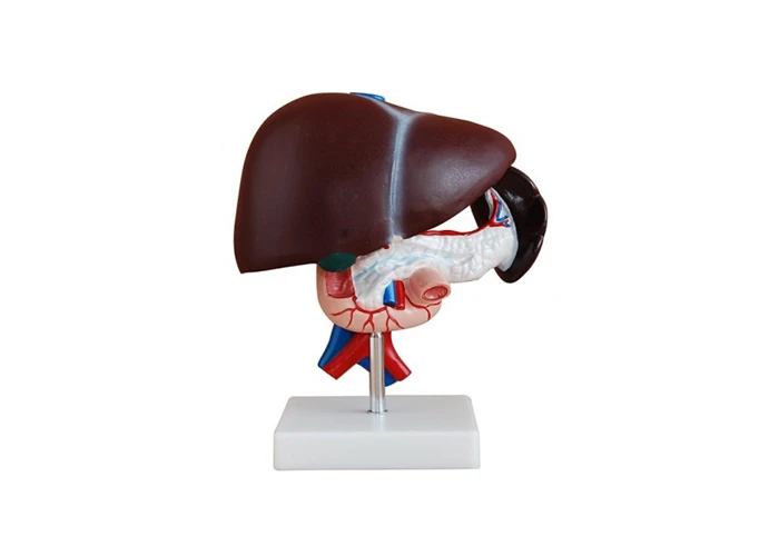 Model znázorňuje anatómiu ľudskej pečene. Vyrobený z plastu, namaľovaný v jasných prírodných farbách, na stojane. Veľkosť modelu nie je menšia ako 20 cm.