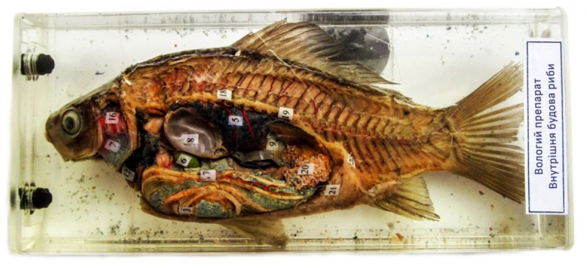 Príprava za mokra. Ryby (vonkajšia a vnútorná štruktúra, v priehľadnom plaste)