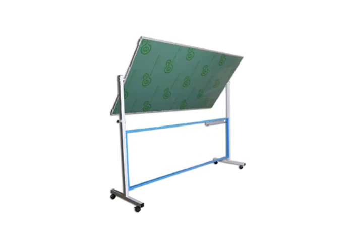 – úspora kriedy a zníženie znečistenia miestnosti;možnosť pripevnenia papierových didaktických materiálov pomocou magnetických „gombíkov“; antivandalské vlastnosti; záručná doba pracovných plôch – 25 rokov (podľa prevádzkových pravidiel stanovených výrobcom).Pracovná plocha obojstrannej tabule je upevnená na kovovom ráme. Vďaka otočnej osi a uzamykacím mechanizmom možno pracovnú plochu tabule ľahko otočiť a zafixovať vo zvislej polohe. Pomocou koliesok možno tabuľu pre pohodlie žiakov ľahko premiestňovať po triede.