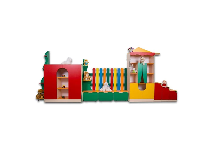 Popis produktuStena „Jedľa“ je multifunkčné, pestré a zaujímavé centrum pre deti predškolského veku. Žiarivý vzhľad zaujme a inšpiruje deti k objavovaniu sveta, fantazírovaniu o cestovaní a vymýšľaniu nových zábavných vzdelávacích hier. 4980x410x1717 mm Celkové rozmery: 4980x410x1717 mm Komponenty: fasády, horný a spodný kryt, bočné steny a police sú vyrobené z laminovanej drevotriesky s hrúbkou 16 mm, emisná trieda E1, na koncoch lepené 2 mm a 0,45 mm hrubým nárazuvzdorným PVC lemom. Dvere majú tvarované výrezy, ktoré umožňujú zvýšiť bezpečnosť detí tým, že sa eliminuje použitie vyčnievajúcich úchytiek.